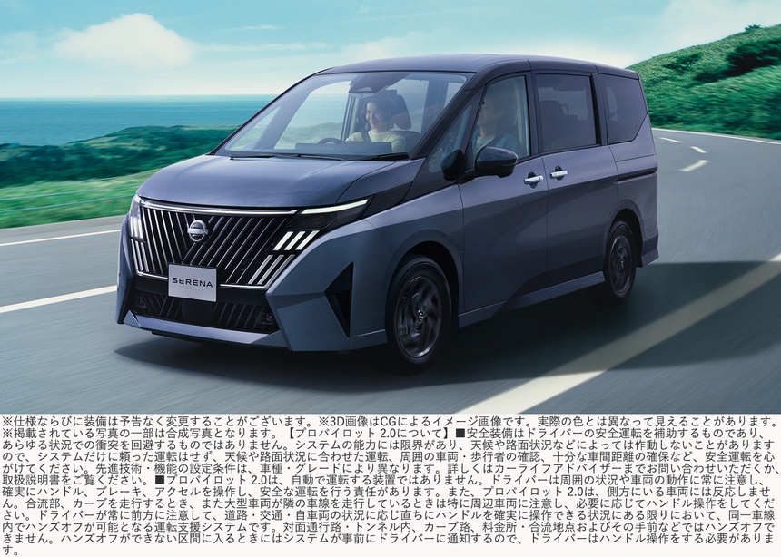 *1 高速道路同一車線走行時に、時速40km/h以上でのハンズオフ機能の採用がミニバン世界初(2022年11月 日産調べ)。※NissanConnect サービスへのご入会(有料)が必要となります。